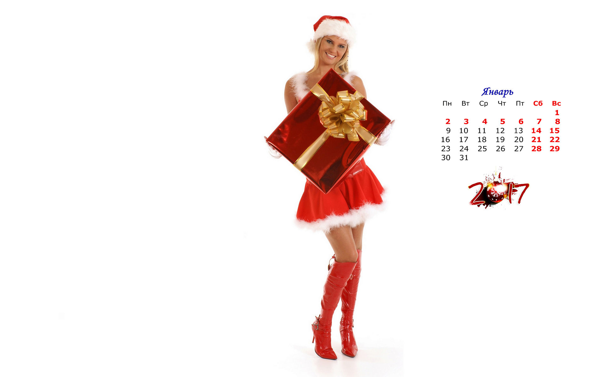 Шикарная снегурочка с коробкой подарков