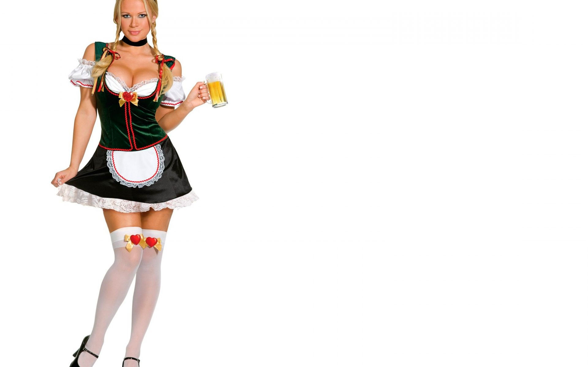 Девушка официантка в униформе с пивом