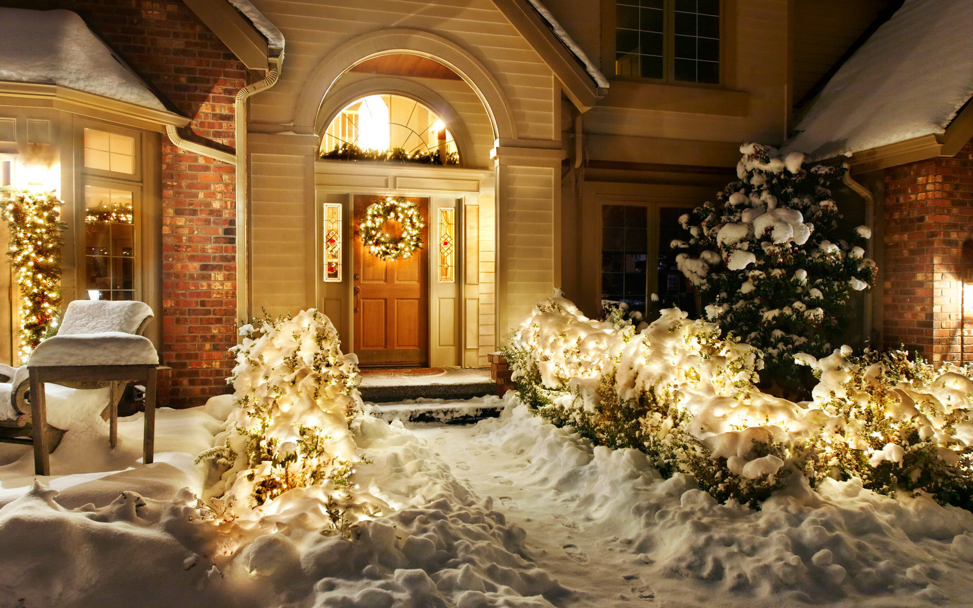 Обои: рождество, новый год. Украшенный дом в Рождество
